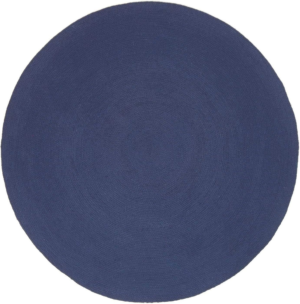 - Unifarbener Flechtteppich. Farbe: dunkelblau, Durchmesser: ca. 120 cm.