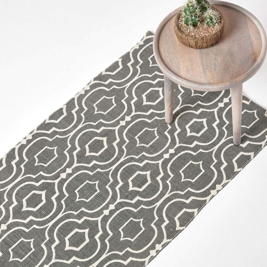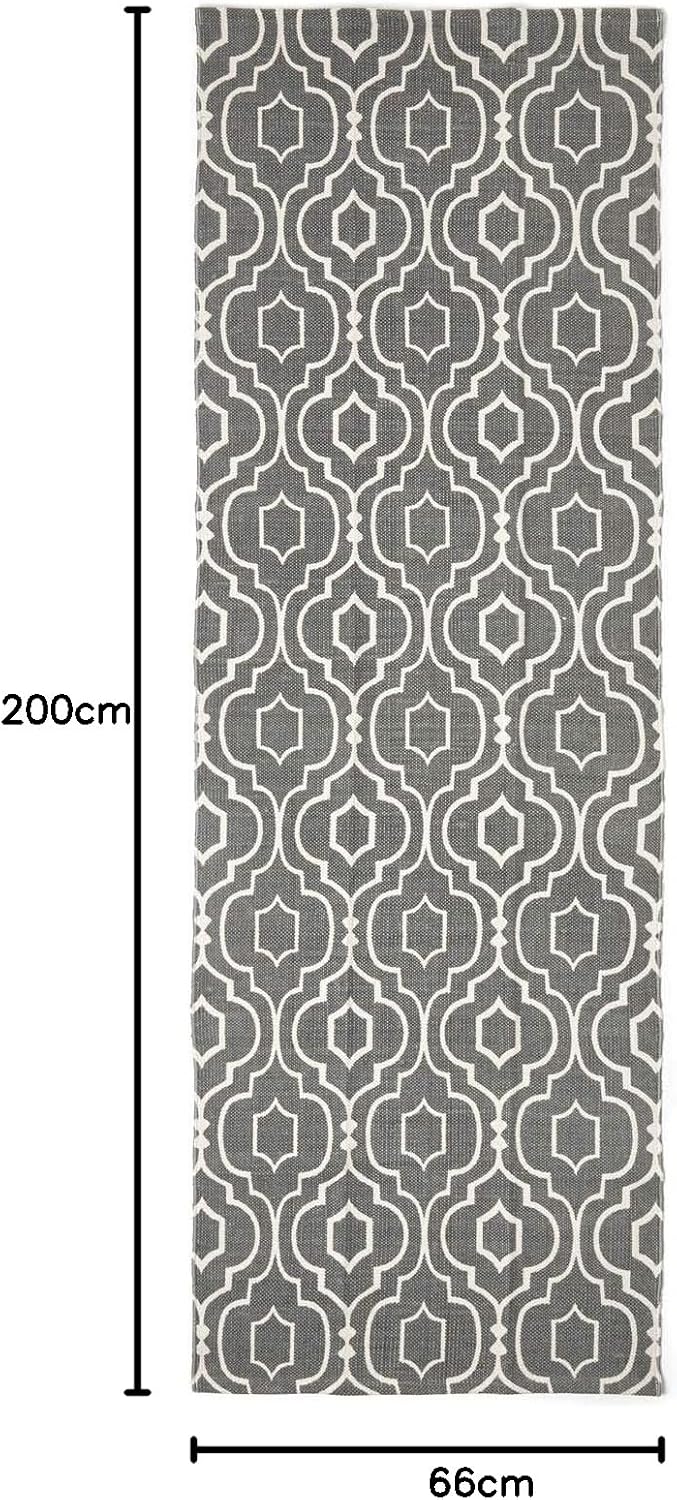 - Hochwertiger Baumwollteppich/-Läufer Riga mit marokkanisch inspiriertem Muster. Grösse: ca. 66 x 200 cm. Farbe: grau-weiss.