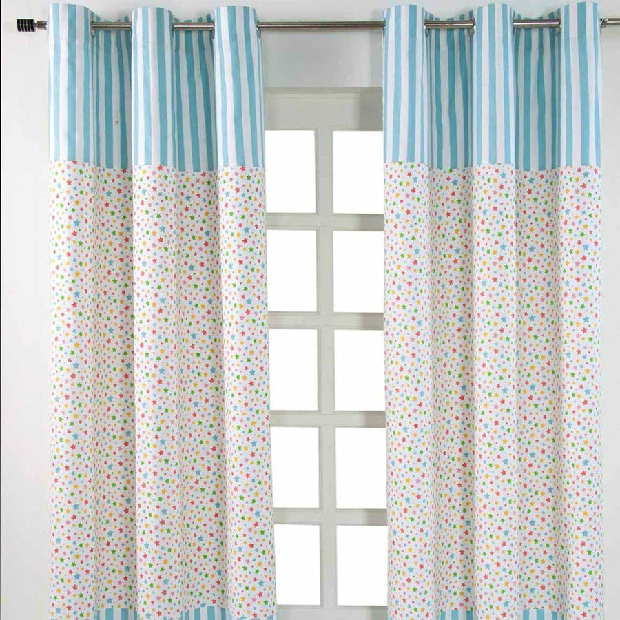- Dekorativer Ösenvorhang bedruckt mit Sternen bunt aus 100% reiner Baumwolle