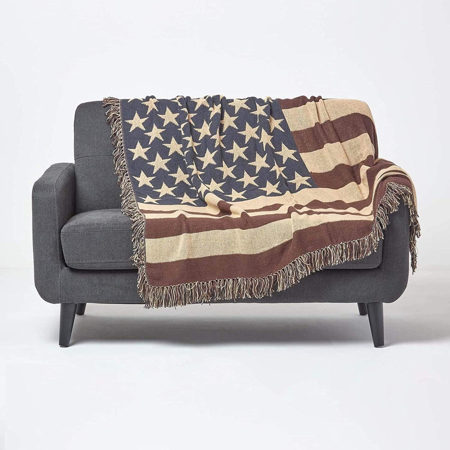- Tagesdecke mit der amerikanischen Flagge. Grösse: ca. 125 x 150 cm, Farbe: mehrfarbig (dunkelblau, creme, rost-rot).
