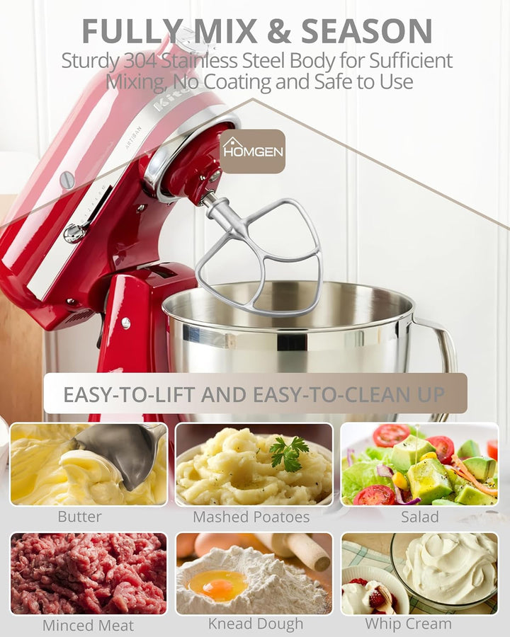 - 【Breiter Anwendungsbereich】HOMGEN KitchenAid Flachbesenaufsatz ist geeignet für Standmixer K45SS, KSM75, KSM150, KSM152, KSM165, KSM100, KSM95, KSM90, KSM110, KSM125 und so weiter.