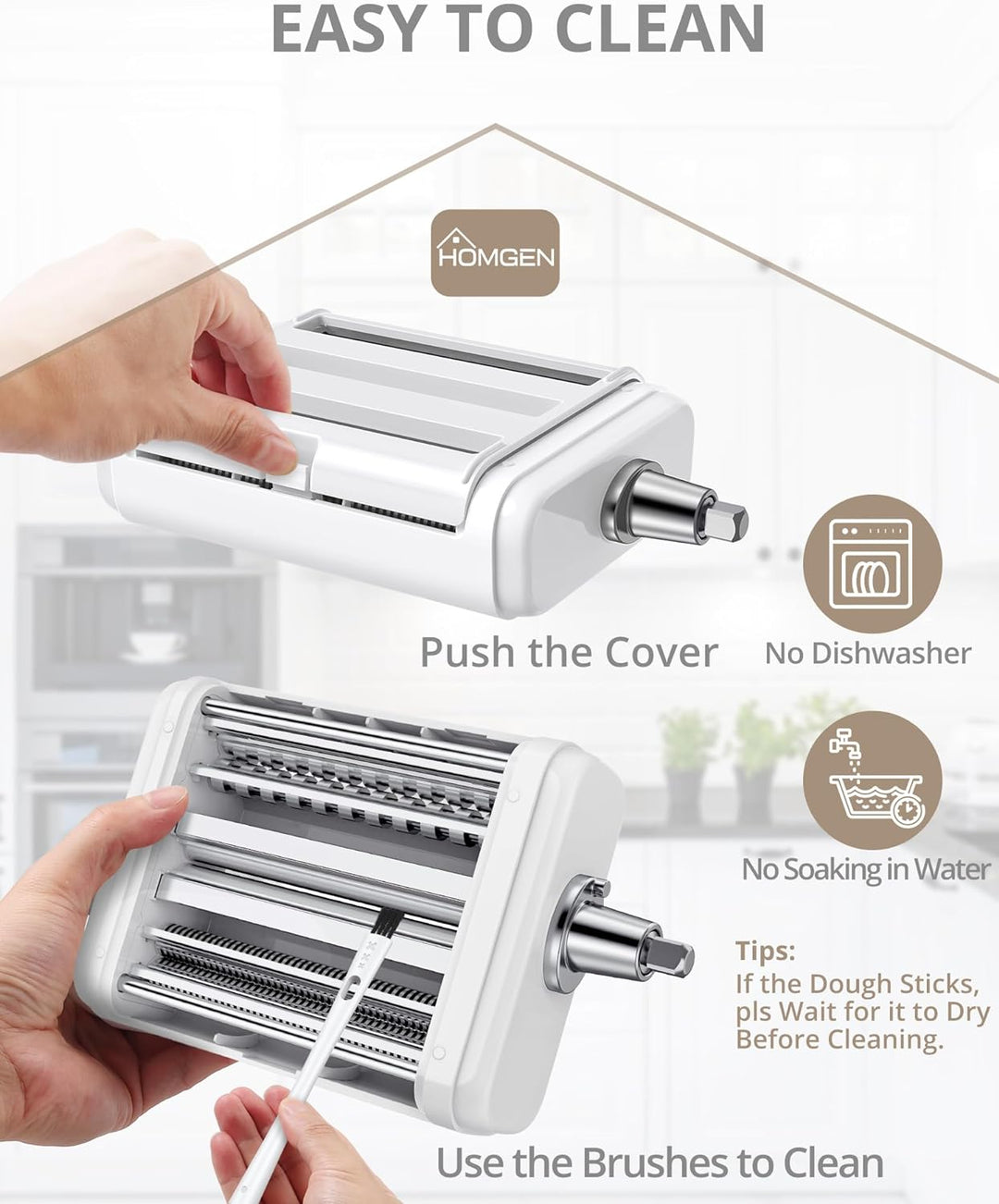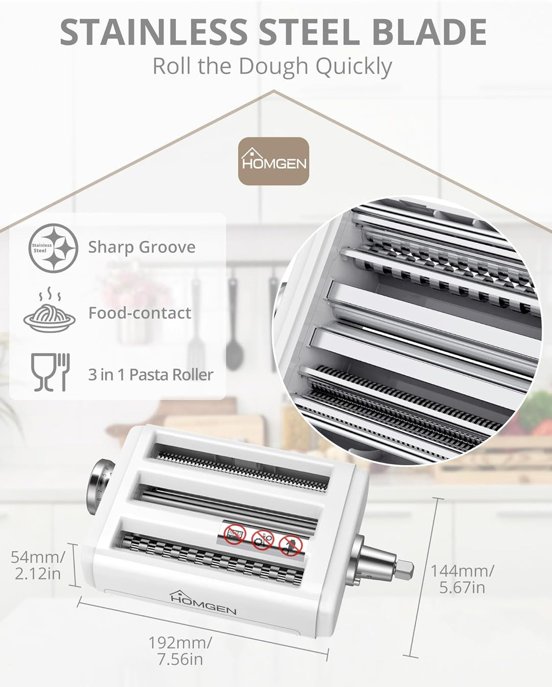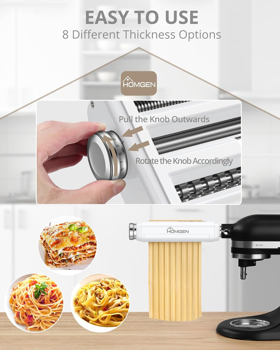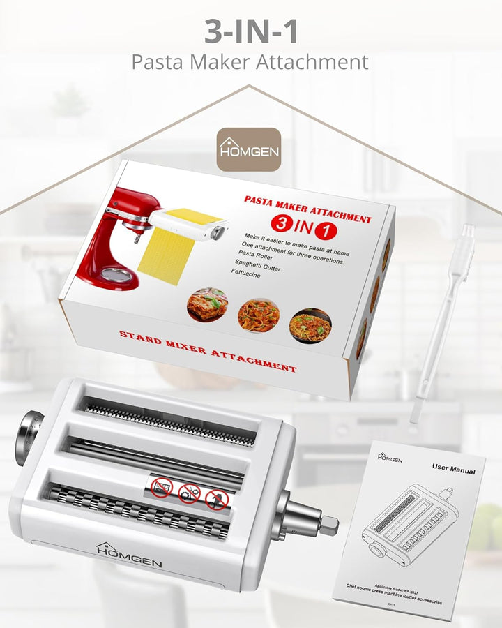 - 【3-IN-1 Nudelmaschine Aufsatz】Dieser Nudelaufsatz ist leicht zu verstauen, nicht leicht zu verlieren und erspart die Mühe, Zubehör während des Gebrauchs auszutauschen.