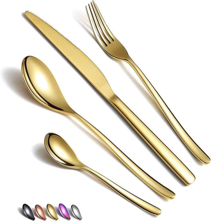 - Titan Gold Noble Plating: Die schwarze Farbe des Bestecksets fällt auf Ihrer Tischplatte auf. Sie sind wunderschön und grossartig, dass Sie von Ihren Gästen viel "Gefällt mir", "Lob", "Lob" bekommen, wenn Sie zusammen essen, von Ihrem Spass, wenn Sie
