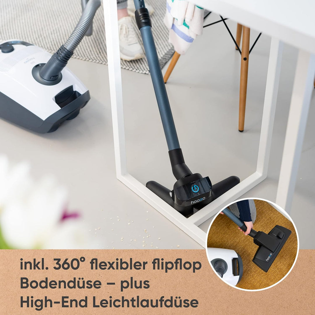 - ANGENEHM LEISE - Der hoogo B3+ flipflop ist mit nur 74 dB ein sehr leiser Staubsauger mit Kabel. Dank modernster Technik des 850-Watt-Motors kann eine intensive und tiefenreine Saugleistung garantiert werden.