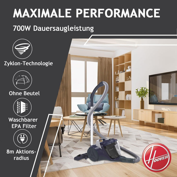 - LIEFERUMFANG: Hoover Breeze BR71_BR20 Bodensauger mit Universalbodendüse und 5m Kabel, EPA12 Filter, 2 L Staubbehälter, Parkettdüse, Fugenaufsatz, Möbelpinsel.