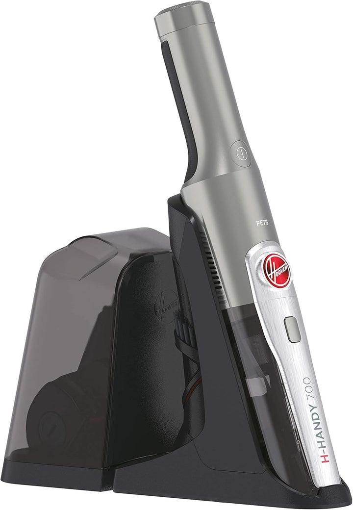 - LIEFERUMFANG: Hoover H-HANDY 700 PETS HH710PPT, Hand- und Camping Staubsauger inkl. Ladestation mit Zubehörhalterung, 3-in-1 Tool, motorisierte Haustier-Düse, Masse: 41,8 x 6,9 x 6,6 cm, Gewicht: 640 g