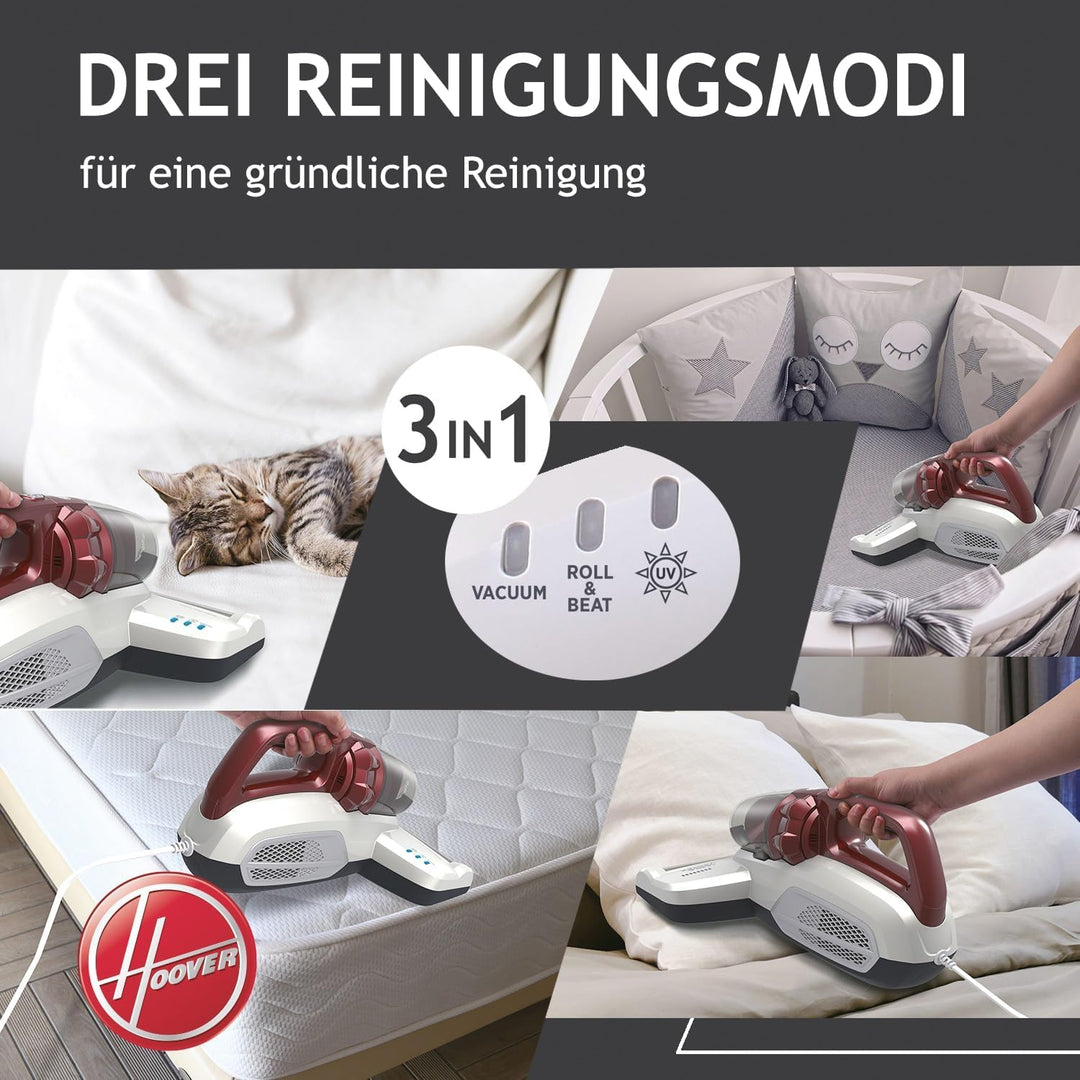 - OPTIMALE REINIGUNG: Im Hoover Roll & Beat Modus werden die Bakterien und Milben aufgewirbelt. Dadurch erzielt das speziell zur Matratzen- und Sofa-Reinigung entwickelte Polsterreinigungsgerät optimale Ergebnisse.