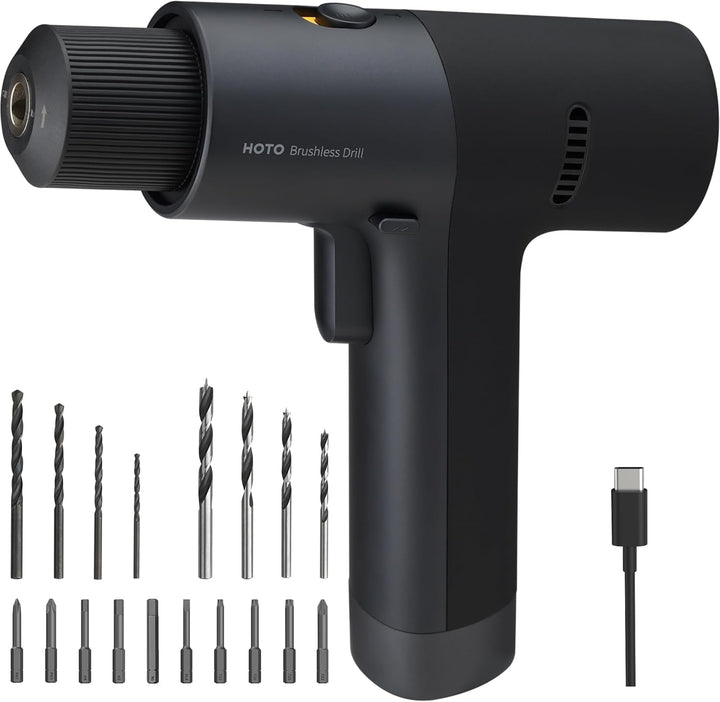 - [USB C Laden] HOTO Akku Schlagbohrschrauber verfügt über eine USB C Buchse und einen eingebauten Akku an der Oberseite, im Gegensatz zu den meisten Akkuschraubern. Dadurch ist er sehr leicht, kleiner und einfacher zu halten. Dank der USB-C Buchse