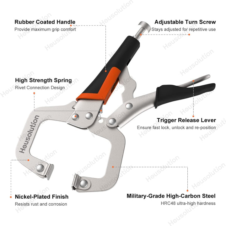 - Hochwertige Materialien - Diese C-Zwingen bestehen aus kohlenstoffreichem Stahl und sind rostbeständig, korrosionsbeständig und kratzfest. Sie unterstützen die langfristige Nutzung. (Hinweis: Lagern Sie die C-Zwingen nach Gebrauch an einem trockenen