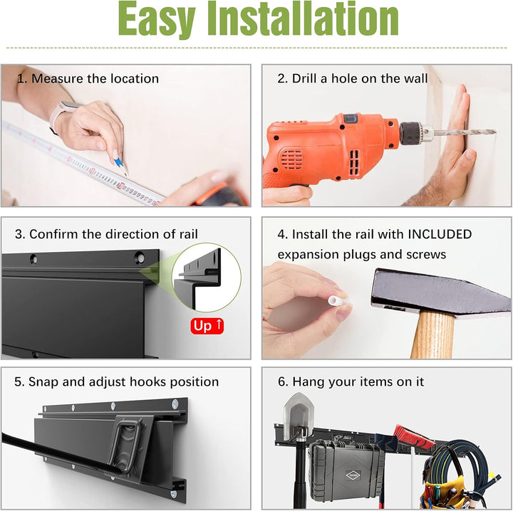 - EINFACHE INSTALLATION: Ausgestattet mit Schrauben und Dübeln für eine einfache Installation. Zuerst die Montageposition bestätigen, dann Löcher in die Wand bohren und die Schienen befestigen, schliesslich die Haken anbringen. Und können Sie mit dem