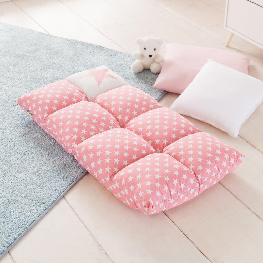 • Der Kindersessel ist aus hochwertigem Baumwollstoff in weiss / rosa genäht. An der Lehne ist als Hingucker noch ein schöne Sternapplikation aufgenäht