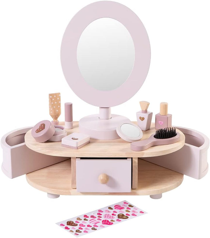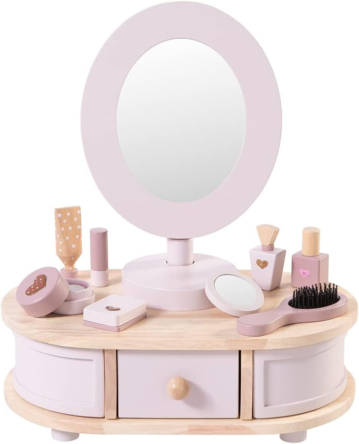- howa Schminktisch für Kinder mit Spiegel, 2 ausklappbaren Fächern und Schublade aus Holz