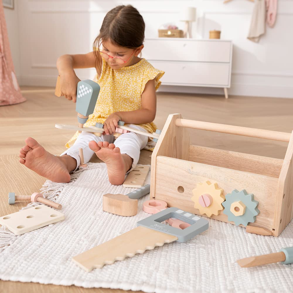 howa Werkzeugkiste Werkzeugkasten Kinder mit 45 tlg. Zubehör aus Holz 4907
