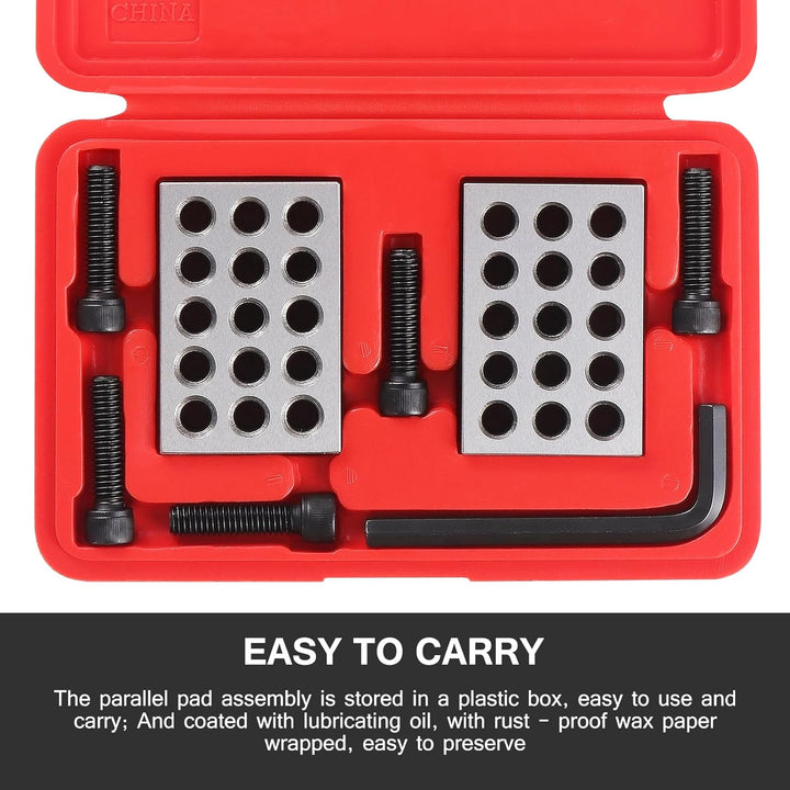 • 👍【Maschinist Parallel 123 Block Set】 Diese Abstandshalter Block Montage enthält 1 Paar parallele Blöcke, 5 Stellschrauben und einen Sechskantschlüssel, einfach zu bedienen. Paare, einfacher und wirtschaftlicher Betrieb beim Bohren, Fräsen,