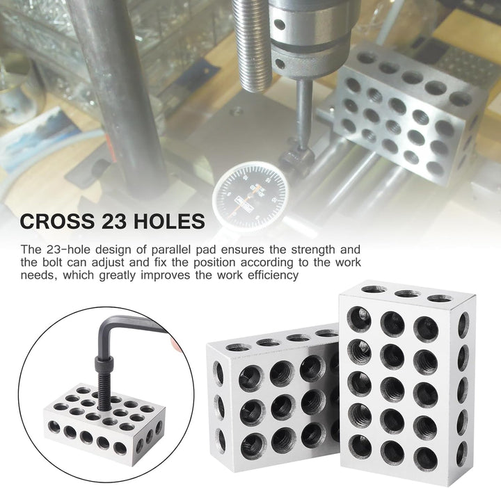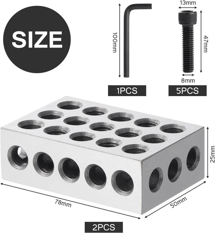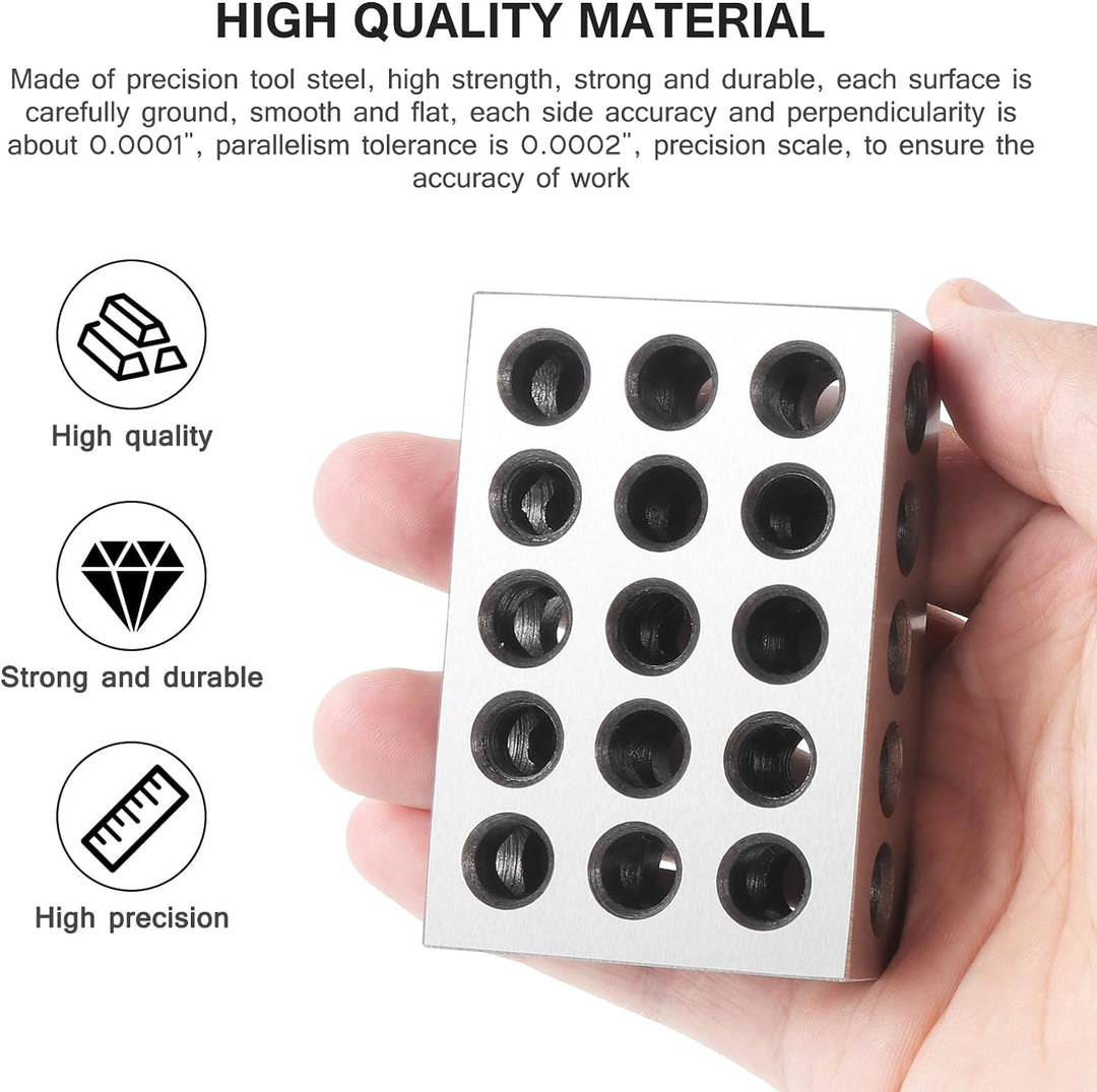 HSEAMALL 1-2-3 Blöcke Präzisionsstahl Parallelblöcke 23 Löcher 2,5 x 5,1 x 7,6 cm Maschinistenfräsen