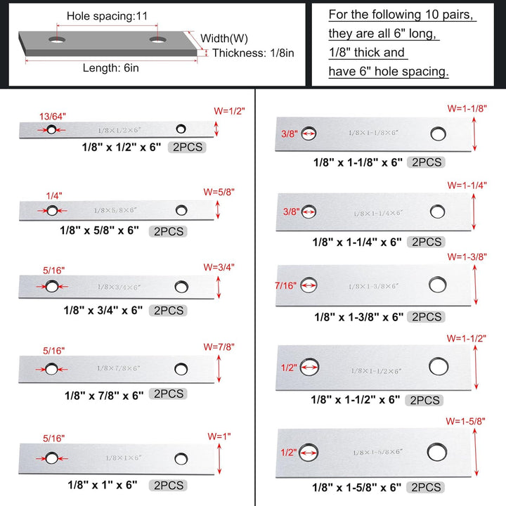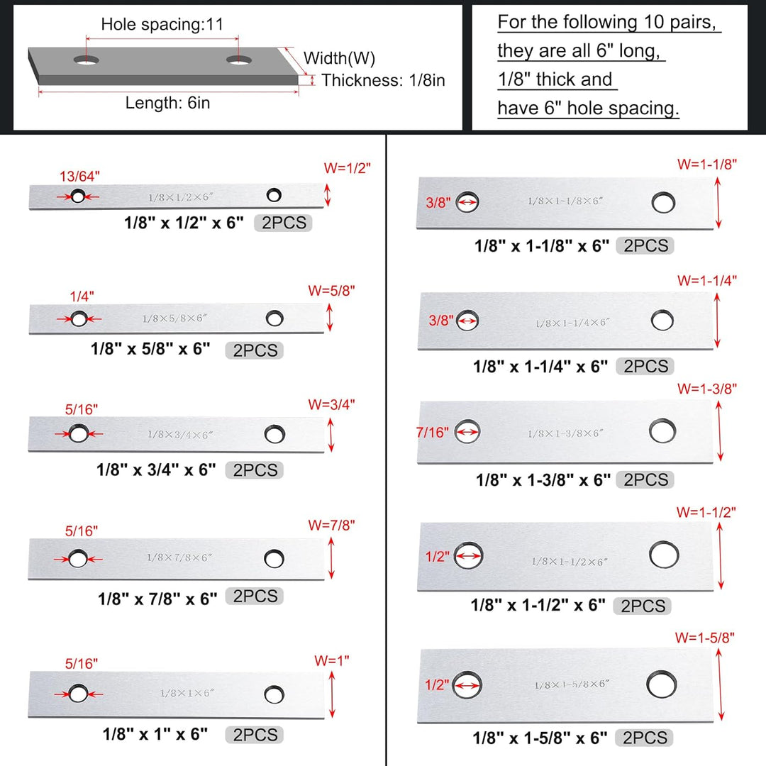 • Praktische Identifikation: Stahl-Parallel-Set dauerhaft lasergravierte Grösse in Standard SAE (Zoll) auf jeder Parallel; die 2 Löcher auf jeder einzelnen Stange sind 10,2 cm von Mitte zu Mitte entfernt, wobei die Durchmesser-Teilung in 1/8 Zoll von 1/2