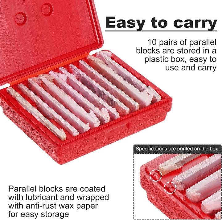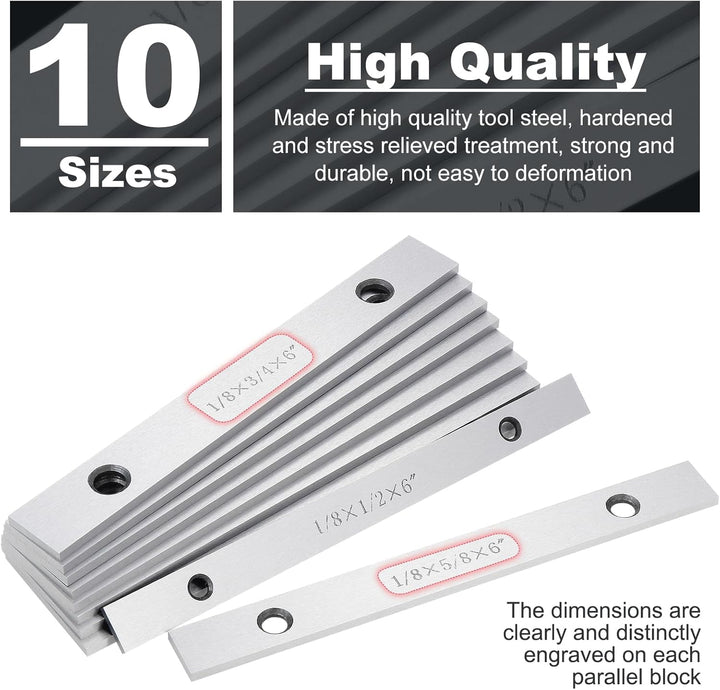 HSEAMALL 10 Paar Parallelblöcke 1/8 Zoll Stahl Parallel-Set, 1/2 Zoll bis 1-5/8 Zoll Dünne Parallels