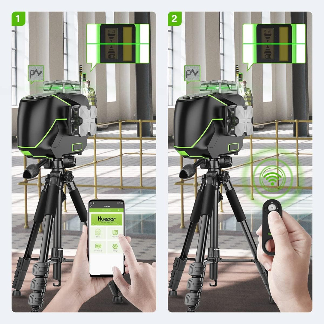 - LCD-BILDSCHIRM & BLUETOOTH-TECHNOLOGIE: Das Laserniveau verfügt über einen LCD-Bildschirm, um den Status der Batterie, des Winkels, des Pendels und des Pulsmodus auf dem Display leicht zu zeigen. Die App und Fernbedienung kann die Laserlinien und den