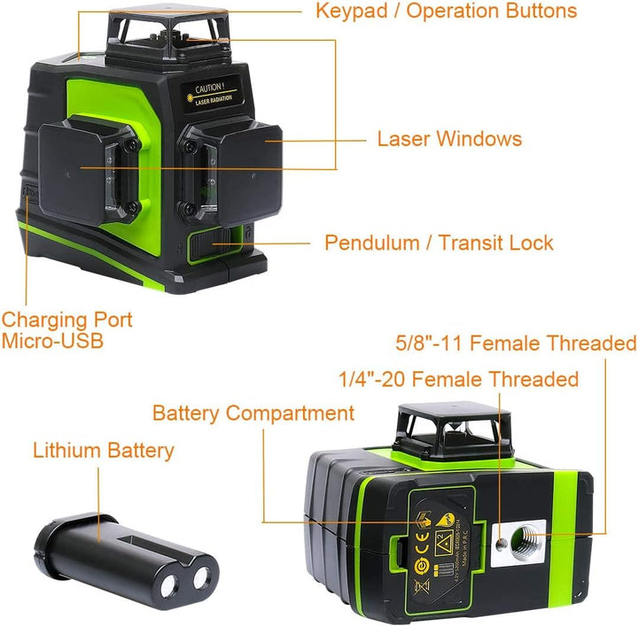 • 【Montagemethode & Langlebiges Design】: Dieses Lasergerät bietet auch 1/4"-20 und 5/8"-11 Befestigungsgewinde auf Laserebene und Halterung zum vorübergehenden Befestigen oder Befestigen am Stativ. IP54 wasser- und staubdicht sorgt dafür, dass Sie