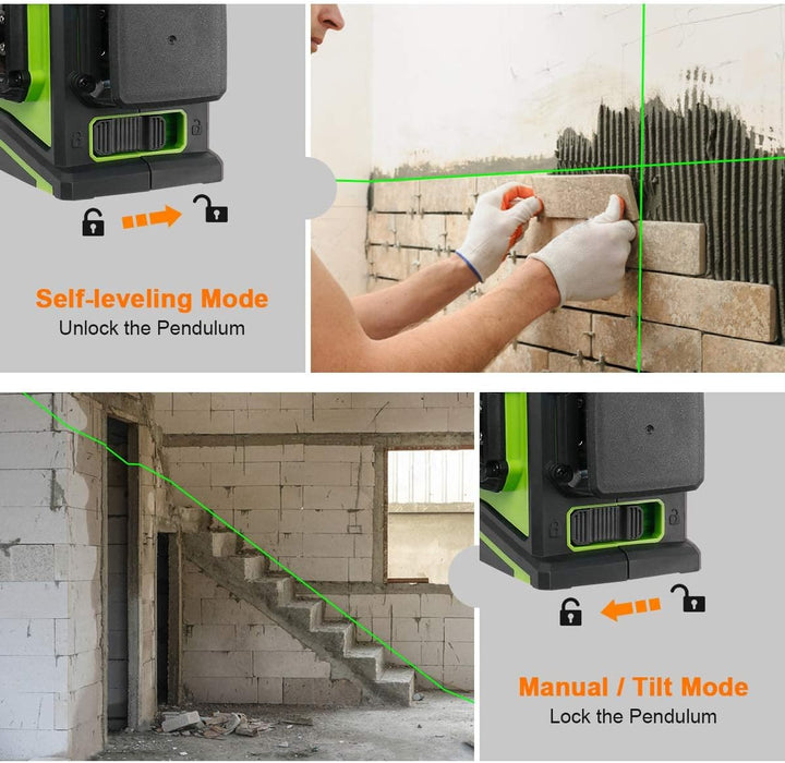 • 【Multifunktionales Laserwerkzeug】: Drei 360° -Laserlinien können einzeln geschaltet werden, sodass Sie die gewünschte Laserlinienkombination auswählen können. Mit unserem intelligenten Pendelsystem gleicht sich dieses Laserebenenwerkzeug selbst