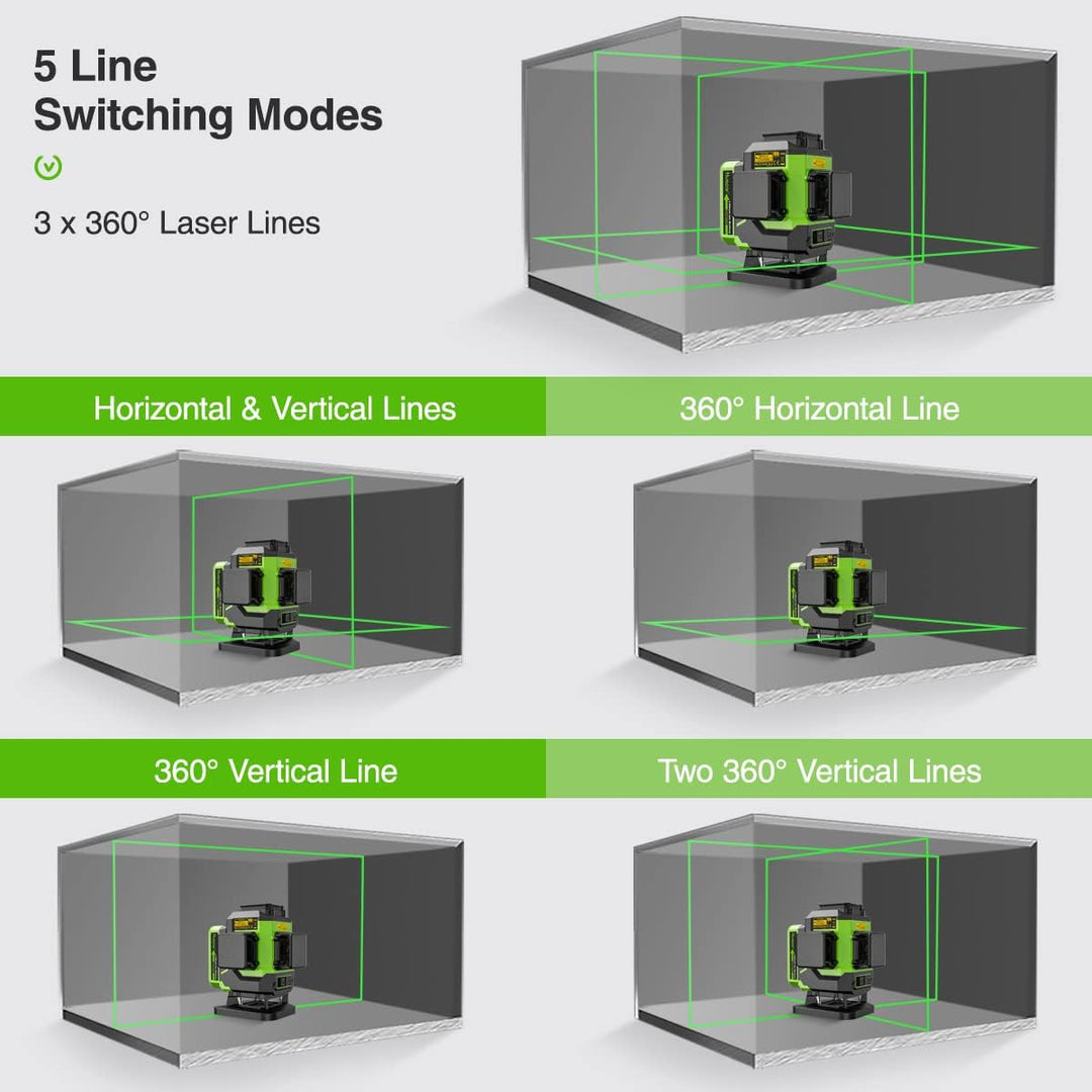 - MULTIFUNKTIONALES LASERWERKZEUG: Die eine 360° horizontale und zwei 360° vertikale Laserlinien können jeweils über H- und V-Tasten auf der Tastatur ausgewählt werden. Mit unserem intelligenten Pendelsystem gleicht sich dieses