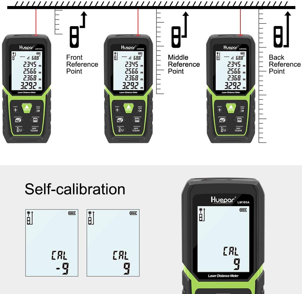 - MEHRERE Mess-Modi: Dieses Laser Entfernungsmesser unterstützt Winkel-, Längen-, Flächen-, Volumenmessung und Indirekte Messung (Pythagoras). Mit kontinuierlicher Messung, Addition/Subtraktionsfunktion, Selbstkalibrierungsfunktion, automatischer