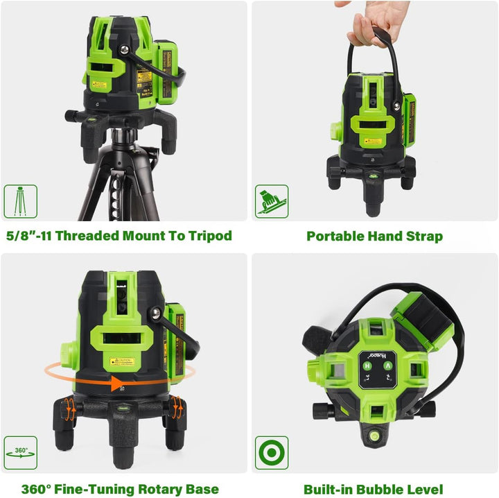 - 【EFFIZIENTES MULTILINIEN-LASERWERKZEUG】: Huepar L141G grüne Multilinien-Lasernivellier projiziert Eine horizontale Linie, vier vertikale Linien und ein Abwärtslotpunkt - zum Nivellieren, Ausrichten von Lot- und Quadratanwendungen. Sie können kurz