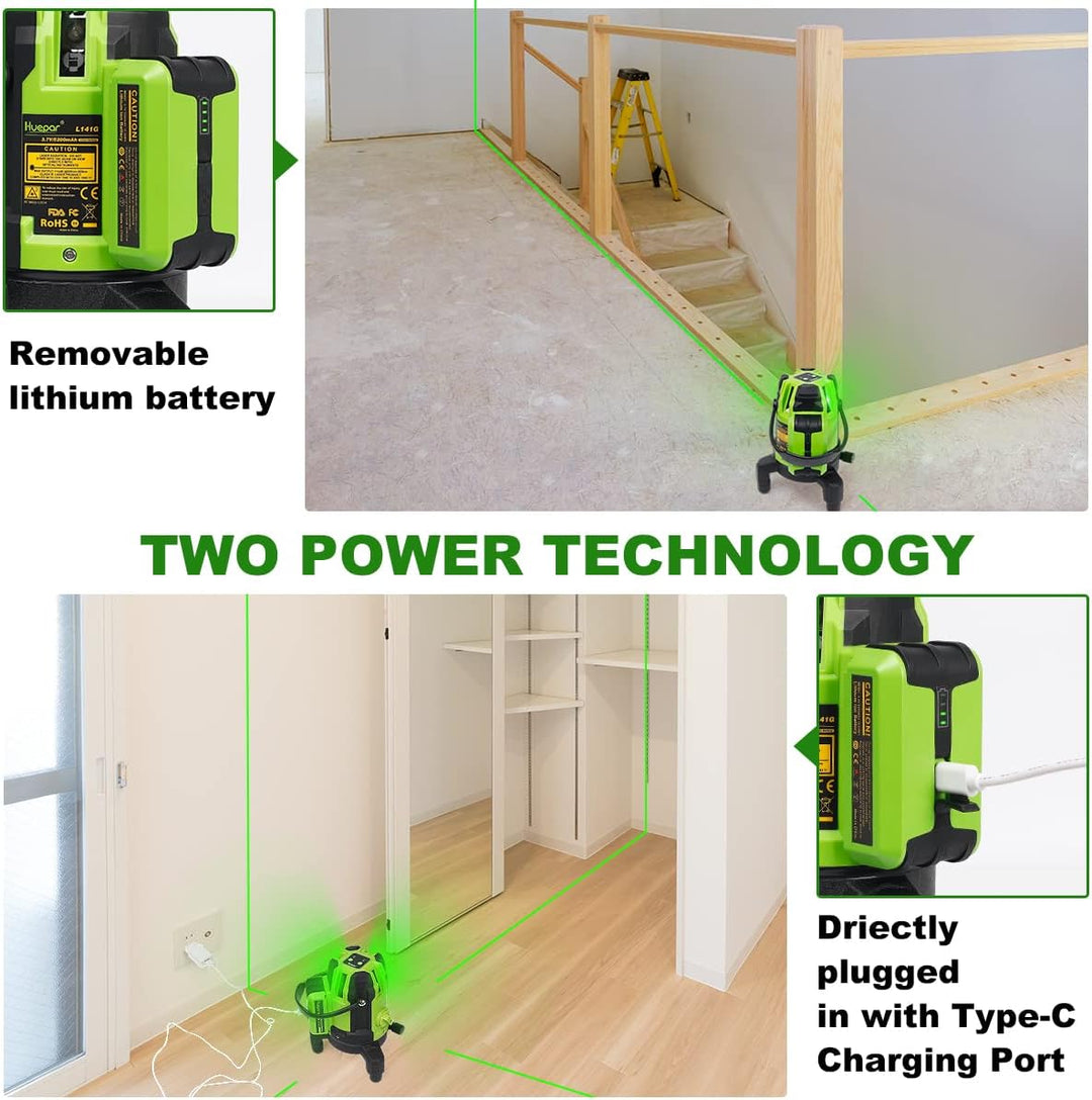 - 【LITHIUM-IONEN-AKKU & TYPE-C LADEANSCHLUSS】: Huepar Laserwerkzeug hat 3.7V / 5200mAh Li-Ionen-Akku für längere Laufzeit ca. 5 Stunden. 4 Batterieanzeigen am Li-Ionen-Akku ermöglichen es den Benutzern, den aktuellen Akkustand und den Ladestatus zu