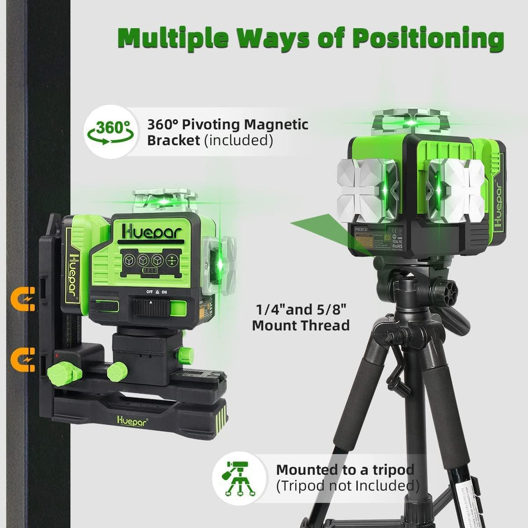 - MAGNETISCHE HALTERUNG & MONTAGEGEWINDE: Dieser grüne Linienlaser bietet 1/4"-20 und 5/8" -11 Montagegewinde zur Befestigung auf Stativ oder Magnethalterung. Die stark magnetische Halterung ermöglicht eine schnelle Positionierung auf Metalloberflächen,