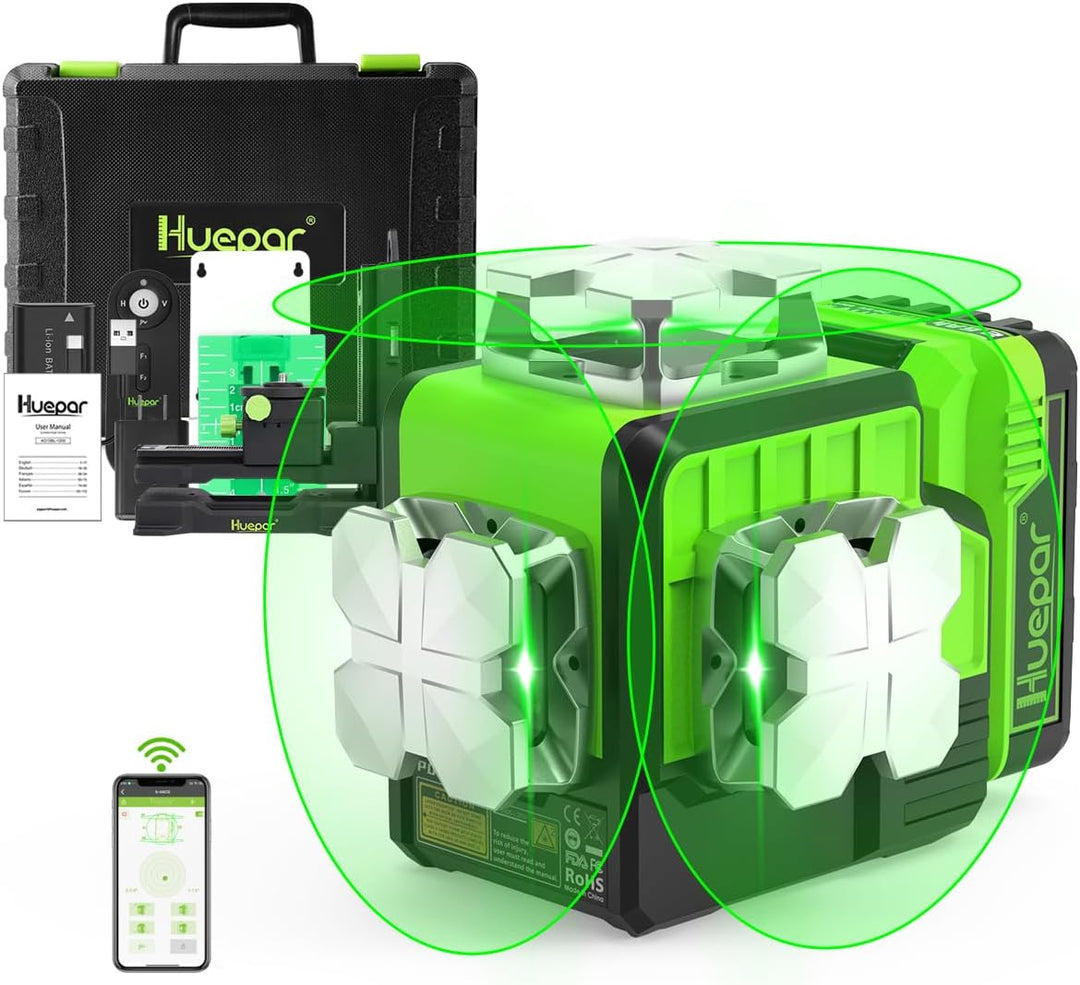 - BLUETOOTH & HIGH Sichtbarkeit: Bluetooth-Konnektivität ermöglicht es, den Pulsmodus ein- / auszuschalten und den Lasernivellier mit der Huepar App oder der Fernbedienung auszuwählen. Dieser selbstnivellierende Lasernivellier hat die die hellgrüne