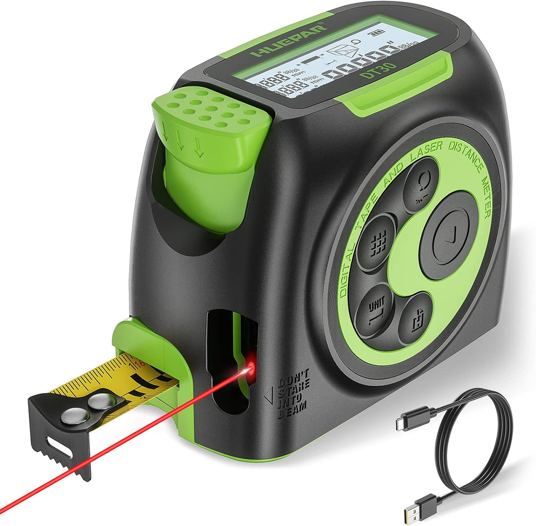 - 2-IN-1-LASER-MESSGERÄT: Dieses Laser-Massband kombiniert ein 60-m-Lasermass mit einem 5-m-Massband, das ein voll funktionsfähiges Messwerkzeug ist. Dieses Massband hat eine Genauigkeit von ±1/16 Zoll. Das Laser-Massband hat die Laserklasse II