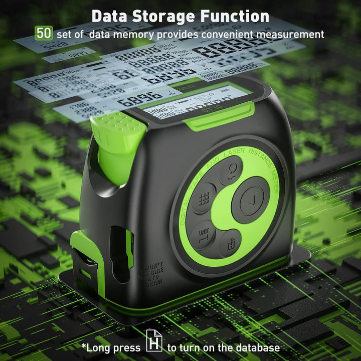 - EINFACHE BEDIENUNG LASERBAND: Das digitale Laserbandmass hat sowohl metrische als auch imperiale Skalen auf dem Band zum einfachen Ablesen. Beweglicher Haken verbessert die Genauigkeit der Innen- und Aussenmessung. Die Bremssperre hilft bei der Steuerung
