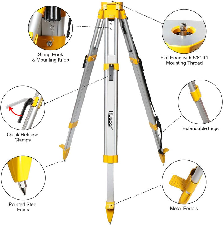 - 【Ausziehbare Höhe】: Das Huepar M3Y Nivellierstativ bietet eine erweiterbare Höhenverstellung. Jedes Bein kann von 96 cm auf 160 cm verlängert werden. Benutzer können die Arbeitshöhe des Stativs für Arbeitsanwendungen unterschiedlicher Höhe von