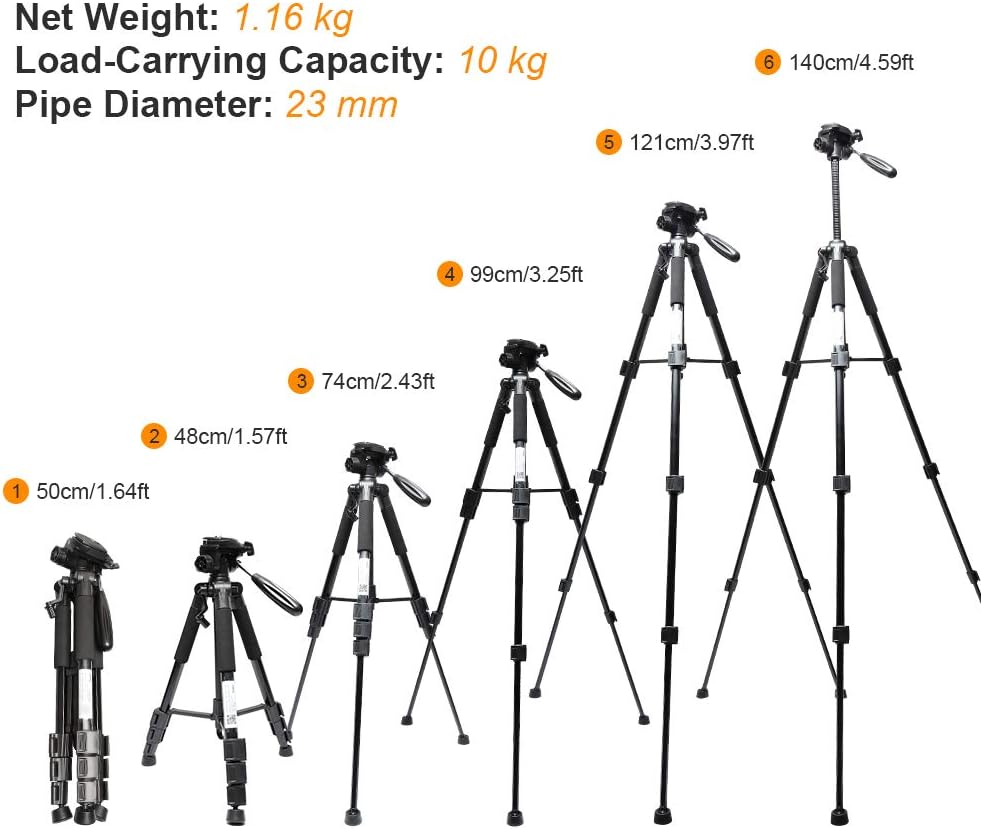 - 【Hochwertiges Kamerastativ】: Das stabile Stativ für die Kamera besteht aus eloxiertem Aluminiumrohr (max. Grösse 23mm) und ABS-Kunststoff und ist sehr robust. Die Mittelsäule und die Mittelstreben bestehen aus Aluminium für zusätzliche