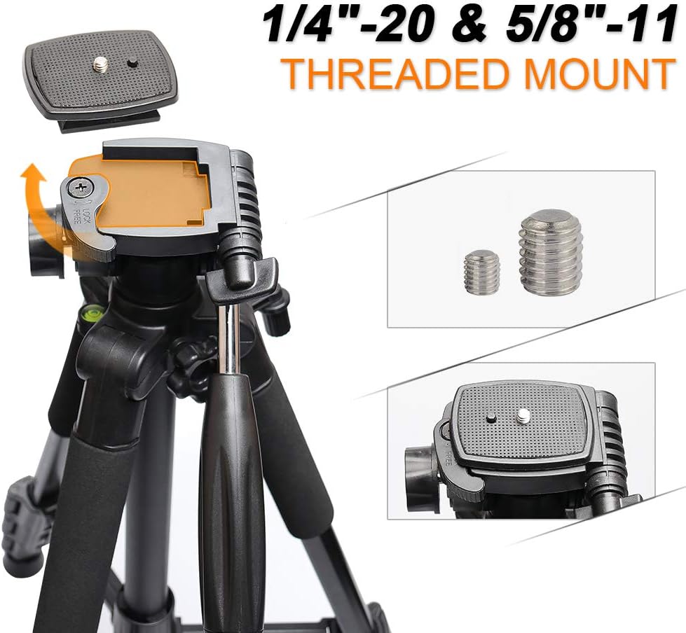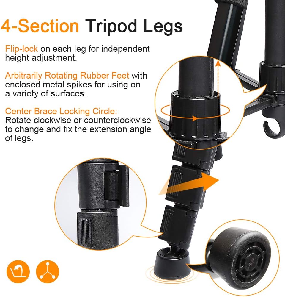 - 【Flexible 3-Wege-Panoramakopf】: 360-Grad-Drehung Panoramen, ermöglicht es Ihnen, das Gerät in einem beliebigen Winkel horizontal und vertikal zu drehen. Die Bewegung des Stativkopfes wird durch einen einzigen Positionierungsarm und einen separaten