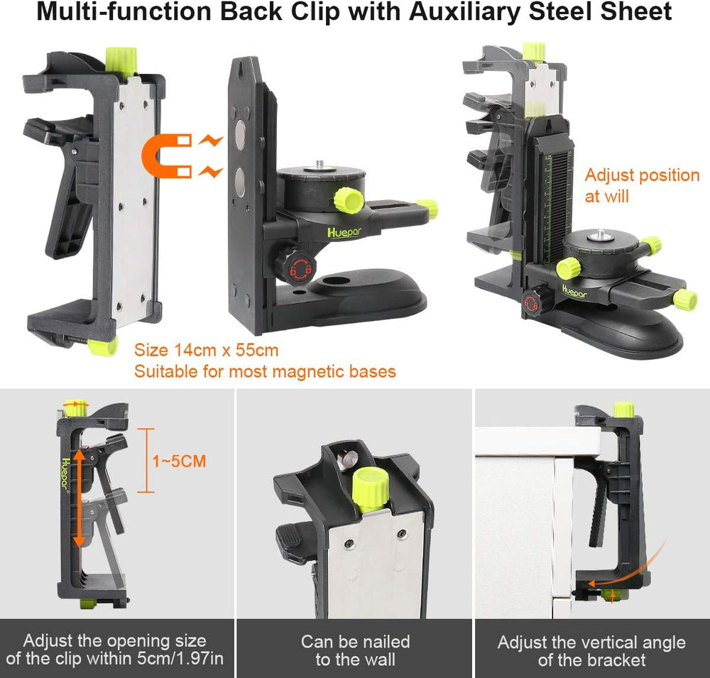 - 【Huepar Dedizierter Adapter für Laserfenster】: Ein spezieller Adapter hilft beim Aufhängen des Laserwerkzeugs und bringt das Laserfenster näher an die Wand. Zu diesem Zeitpunkt kann die Halterung umgedreht oder zur Seite gedreht werden. Der