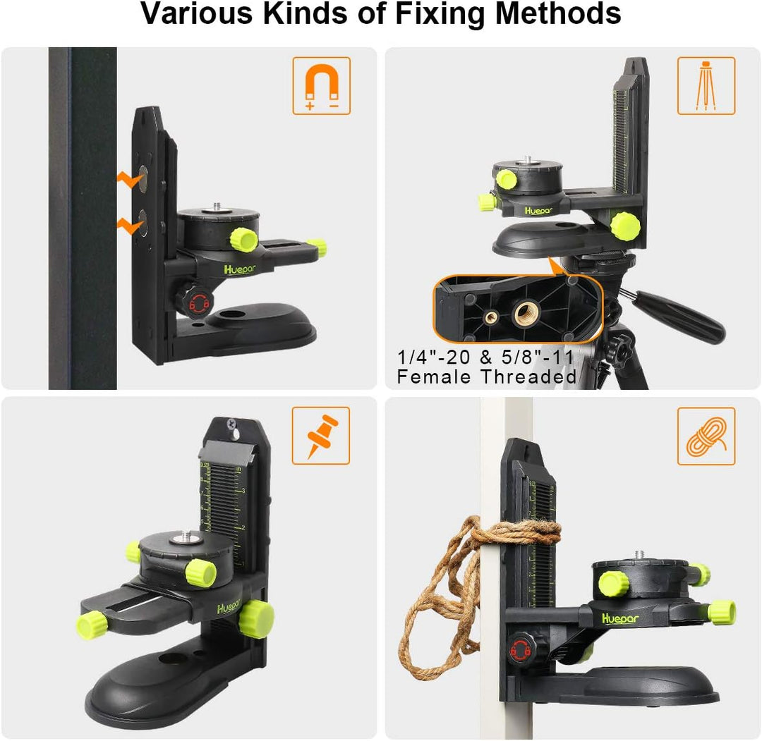 - 【Mehrere Installationsmethoden der Halterung】: 1/4"-20 und 5/8"-11 Innengewinde ermöglichen die Befestigung an einem Stativ oder einem Laserstab. Mit den starken Magneten kann die Halterung in jeder Höhe oder auf anderen Metalloberflächen am