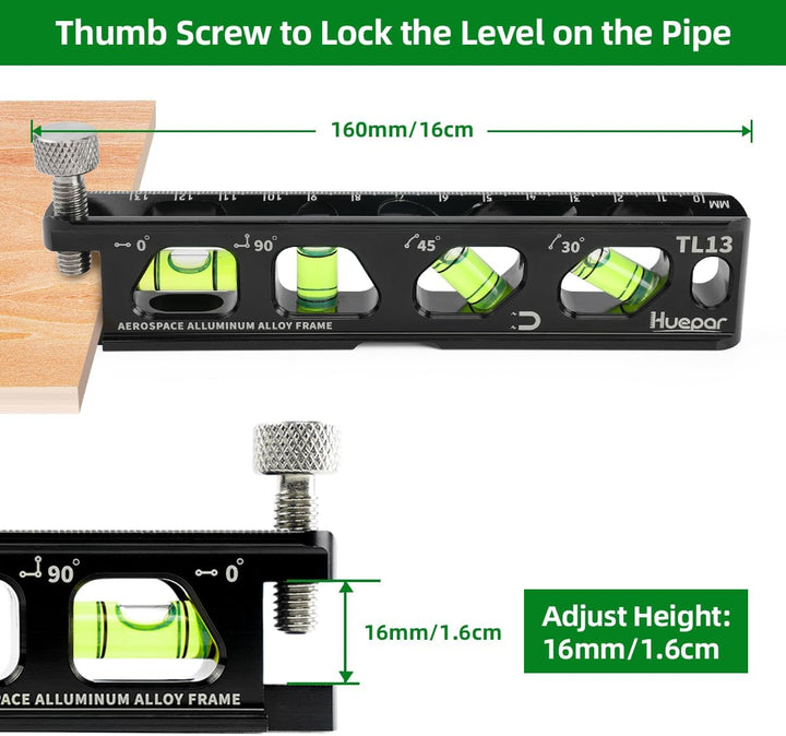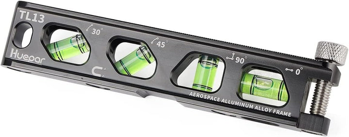 - LANGLEBIGES MATERIAL & SCHRAUBE: Aus Aluminiumlegierung gefertigt, hat Huepar Torpedoniveau eine ausgezeichnete Haltbarkeit und hohe Genauigkeit. Mit der Schraube wird Wasserwaage befestigt, um den Winkel zu messen. Diese Funktion macht es bequemer,