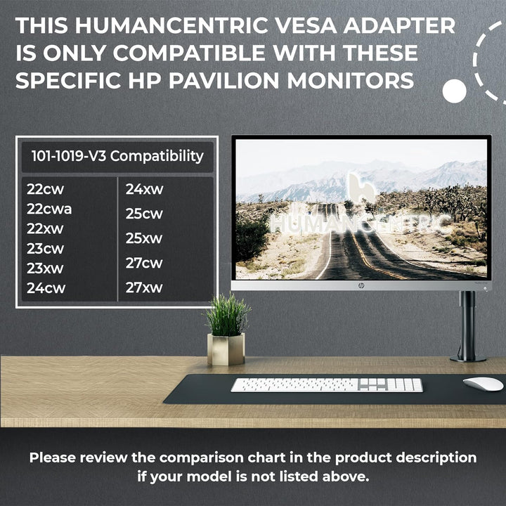 - Montieren Sie Ihren HP Pavilion Monitor auf einer Standard-VESA-Halterung: Obwohl diese Monitore nicht mit Befestigungslöchern hergestellt wurden, ermöglicht unsere praktische Halterung es Ihnen, Ihren HP Pavilion Monitor trotzdem anzuschliessen. Egal,