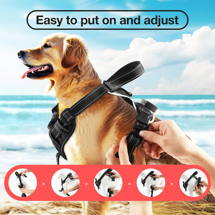- 【Vollständig Einstellbares Hundegeschirr】Dieses verstellbare Hundegeschirr verfügt über 4 leicht einstellbare Gurte und 2 Schnellverschlüsse, die das An-und Ausziehen des Hundegeschirrs erleichtern. Sie können sie nutzen, um eine perfekte