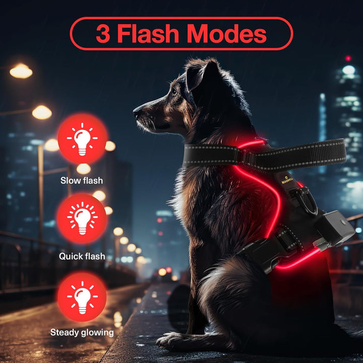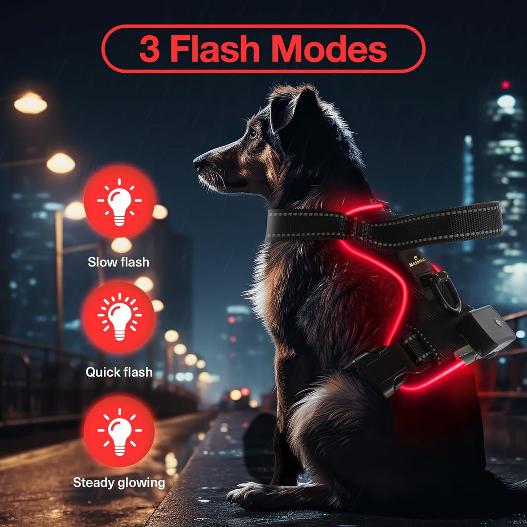 - 【Aufladbare LED Hundegeschirr】Unser beleuchtetes Hundegeschirr kann über USB-C aufgeladen werden. Keine Sorgen um den Batteriewechsel und keine zusätzlichen Kosten. Einfach in der Anwendung und umweltfreundlich. Das LED-Hundegeschirr funktioniert
