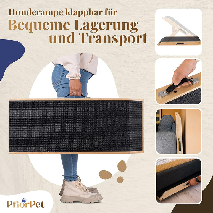 - MIT TRAGEGRIFF: Unsere Hunderampe faltbar wird komplett zusammengebaut geliefert, so dass kein Werkzeug erforderlich ist. Der Tragegriff sorgt für einfachen Transport. Abmessungen unserer Hunderampen zusammengeklappt: L: 89 cm x B: 36 cm x H: 7 cm.