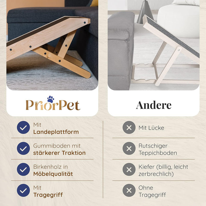 - MASSIVES BIRKENHOLZ: Unsere Hundetreppe ist hergestellt aus Birkenholz in Möbelqualität, das stärker ist als die meisten anderen Hölzer, wie z.B. Kiefer. Die Rampe kann grosse, schwere Hunde tragen. Wir bieten 5 schöne Farben, die zu Ihrem Zuhause