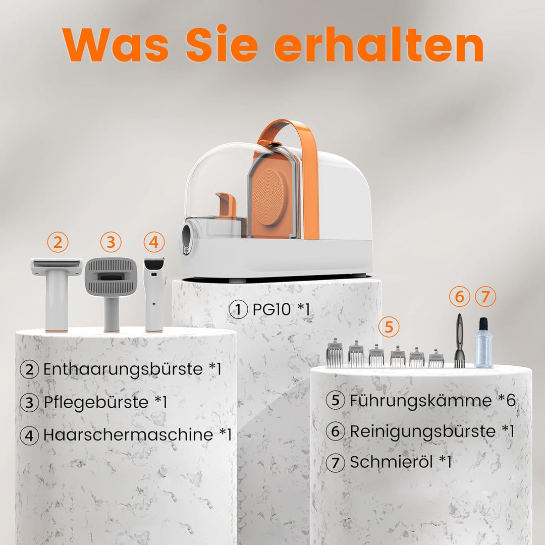 • [𝐕𝐞𝐫𝐩𝐚𝐜𝐤𝐮𝐧𝐠 & 𝐊𝐮𝐧𝐝𝐞𝐧𝐝𝐢𝐞𝐧𝐬𝐭] Im Lieferumfang enthalten: 1 Tierhaar Staubsauger, 1 Elektrische Haarschneider, 1 Pflegebürste, 1 Entfilzungsbürste, 6 Kammaufsätze, 1 Schmieröl, 1