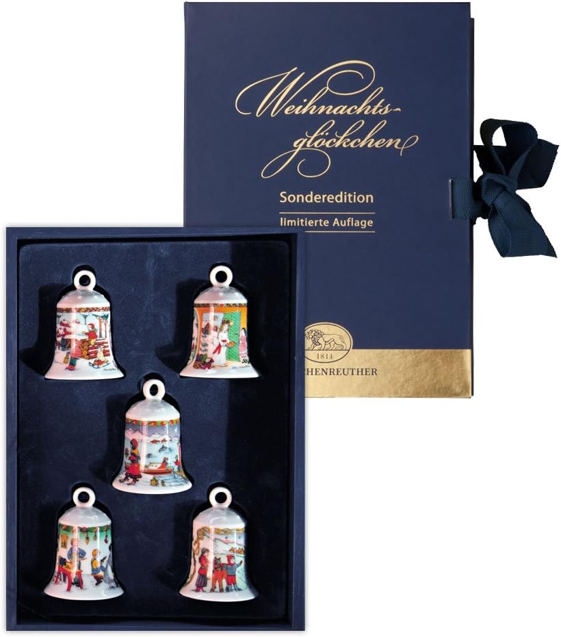 Hutschenreuther 02250-725488-29214 Fünf Stück Porzellan-Miniglöckchen im Setzkasten im Geschenkkarto