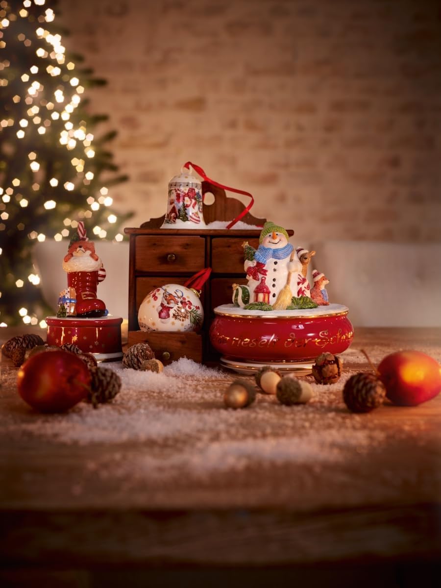 • Die besinnliche Melodie erklingt aus den von Hand bemalten Spieluhren in zwei Grössen und greift die Vorfreude auf das Weihnachtsfest in ei nem farbenfrohen Dekor auf.