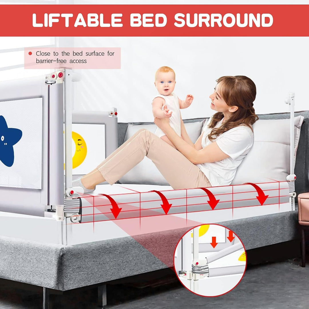 - ★.Einstellbare Höhe - Die Höhe der Bettgitter kann je nach Dicke der Matratze frei eingestellt werden, 34 Positionen können eingestellt werden. Das Bettgitter ist vertikal konstruiert und kann frei angehoben und abgesenkt werden, um das Bett leicht