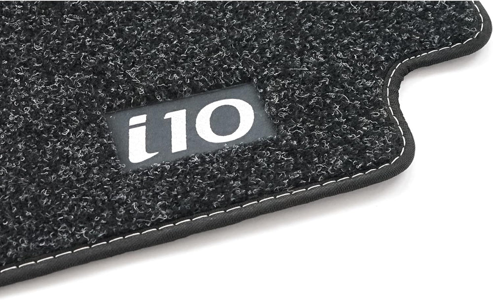 • Design: mit gesticktem i10 Logo auf der Fahrermatte | Rückenbeschichtung: Antirutschbelag | Farbe: grauschwarz, mit weisser Naht