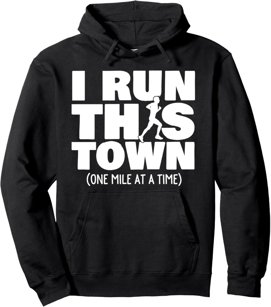 I Run This Town (One Mile At A Time) Male Running Pullover Hoodie