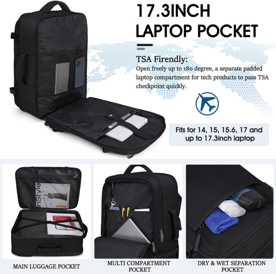 • 【Perfekt für Flugreisen】Dieser laptop rucksack erfüllt die Anforderungen der Fluggesellschaften an das Packmass und kann im Gepäckfach oder unter dem Flugzeugsitz verstaut werden. Ein separates 17,3"-Laptop-Fach bietet Platz für technische